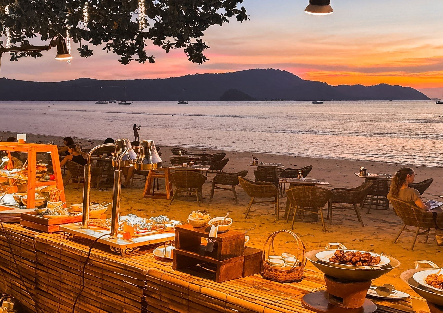 Relax by the sea and enjoy an enticing array of BBQ skewers including prawns, squid, chicken and beef. Serve with spicy Thai, tamarind and chili sauces puls a refreshing Thai Style papaya salad to complete the experience